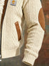 Premium suede-style details on the pockets, elbow patches, and collar add a touch of timeless elegance, enhancing the cardigan’s vintage character. The high collar and full-zip closure create a snug barrier against the wind, making it an ideal layer for crisp mornings, winter walks, and relaxed evenings out.