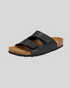 The fit is comfortable and stable, with a minimal silhouette that flatters the foot without constriction. Lightweight and pleasant to wear all day, they adapt easily to both informal settings and refined moments of relaxation. The visible stitching detail on the straps adds a bold touch to the design while maintaining a sober and functional aesthetic. Perfect for those seeking a versatile accessory for regular use.
