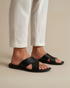 The cross-strap structure ensures a secure and comfortable fit, allowing the foot to move freely and fluidly. The slightly contoured footbed supports each step, delivering softness and stability. With its clean yet distinctive design, it pairs easily with both casual and minimal looks, reinforcing a timeless, understated style.