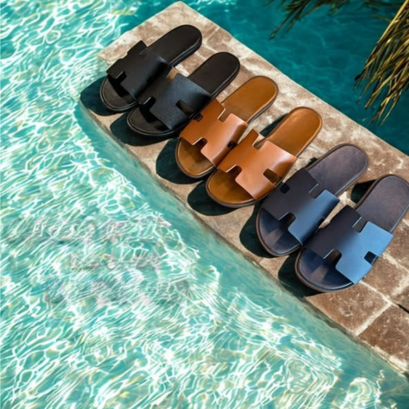 MINIMALIST LEATHER SLIPPERS WITH AN ERGONOMIC RUBBER SOLE.